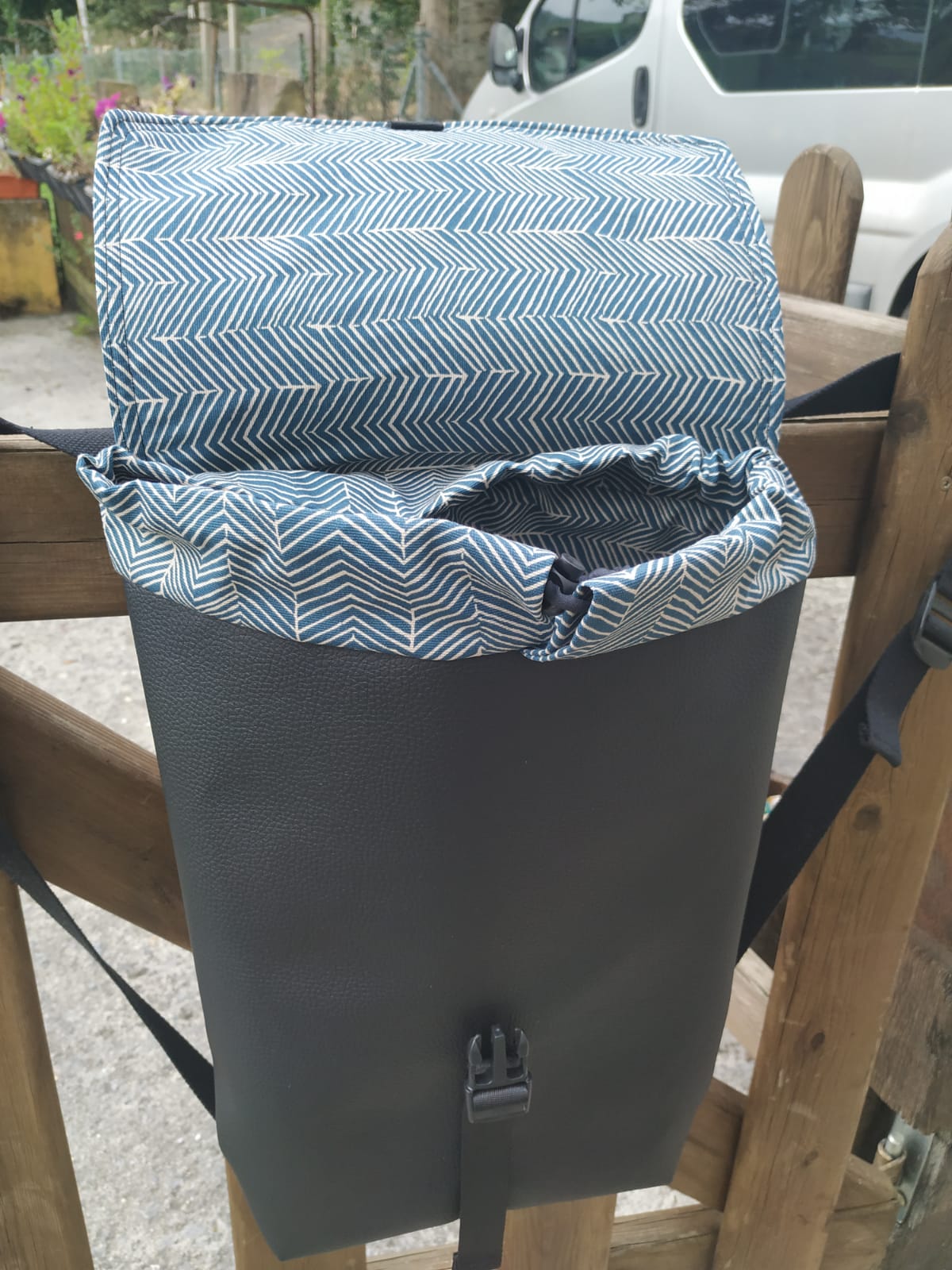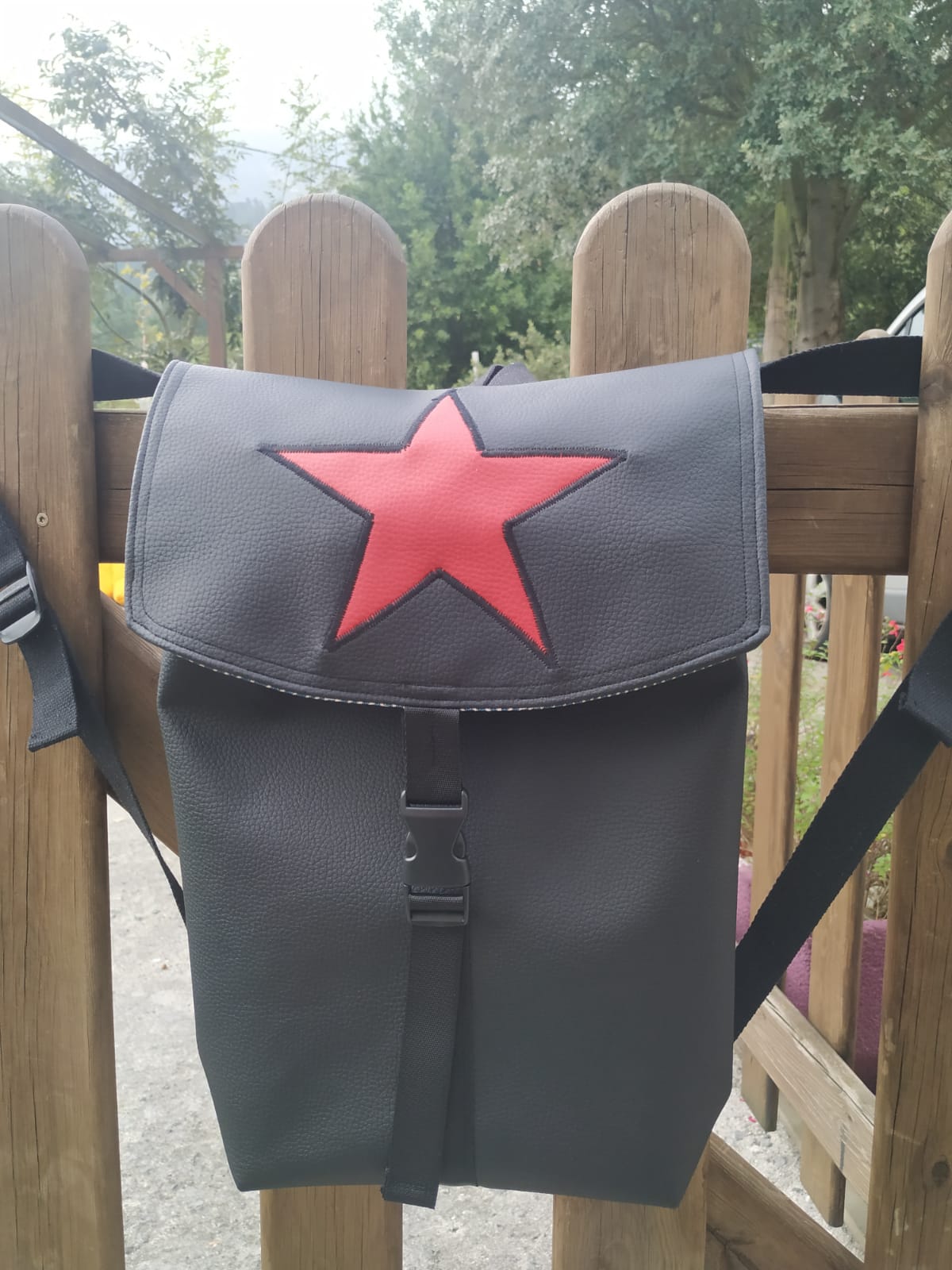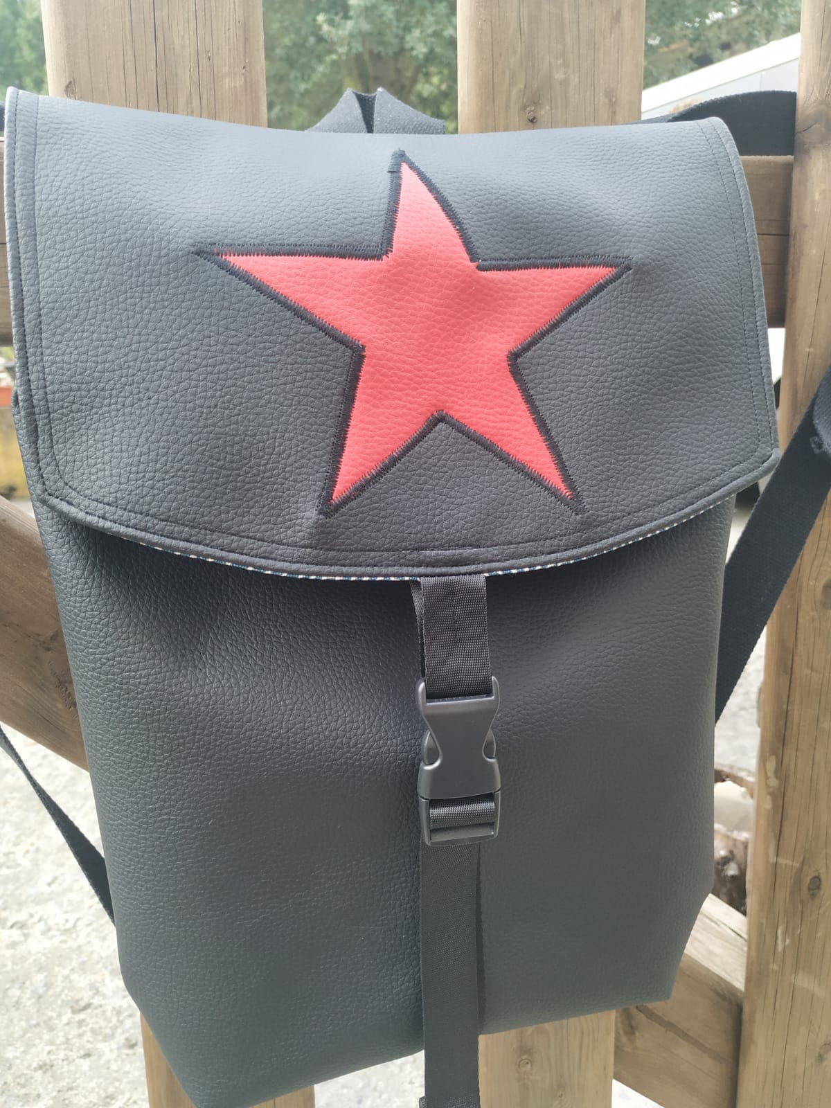 Mochila de polipiel hecha a mano con forro interior de algodón.