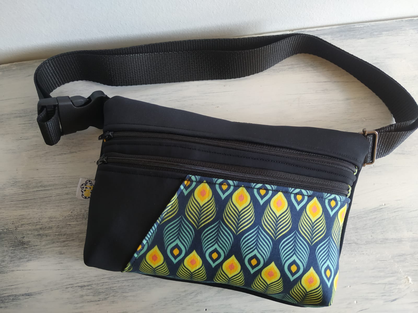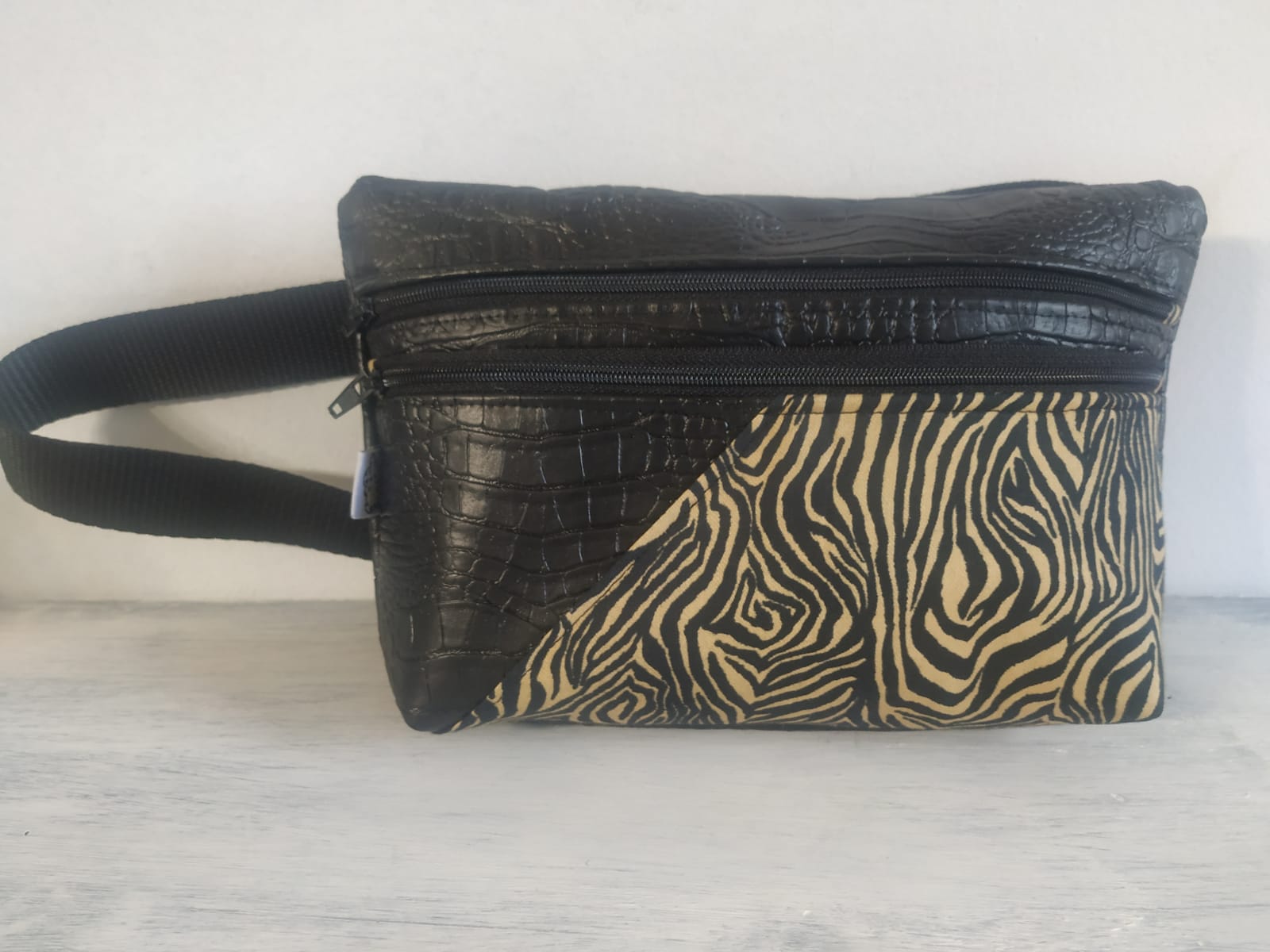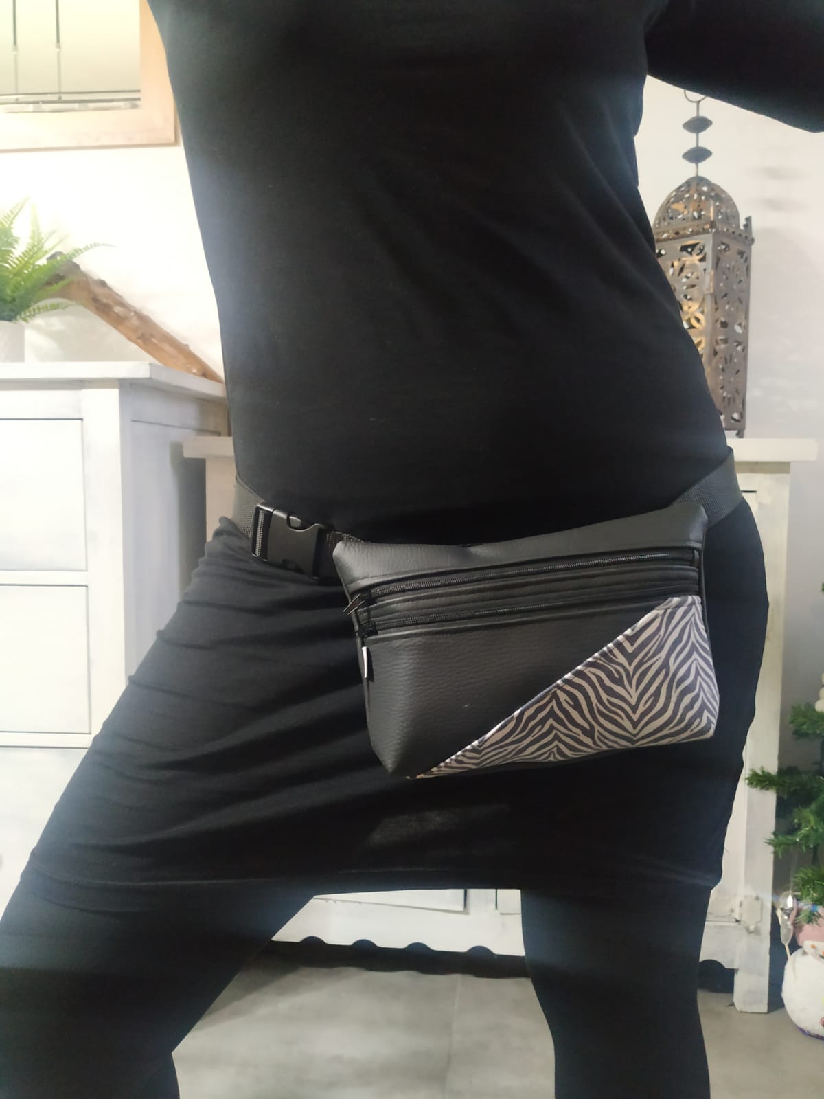 Bi kremaileradun Riñonera. Neopreno, larruantz edo oihal bakeroz egina. / Riñonera con dos cremalleras hecha de neopreno, polipiel o tela vaquera.