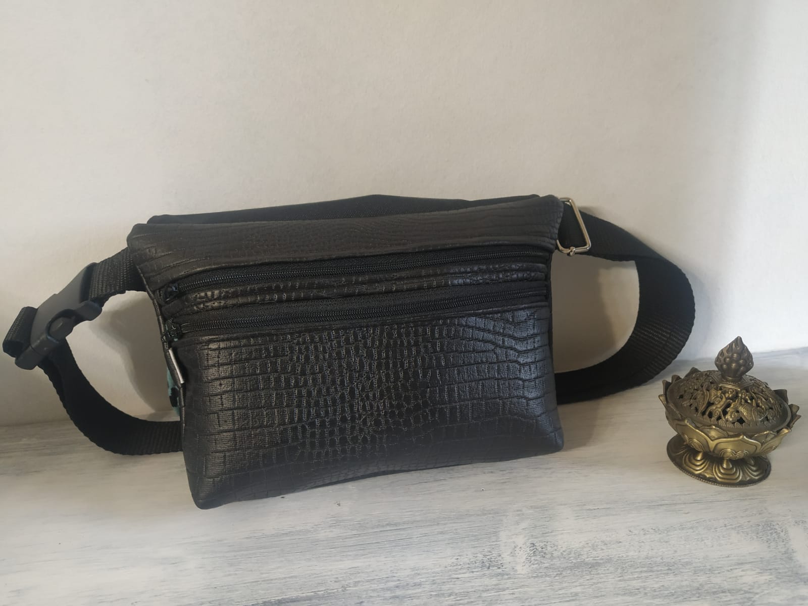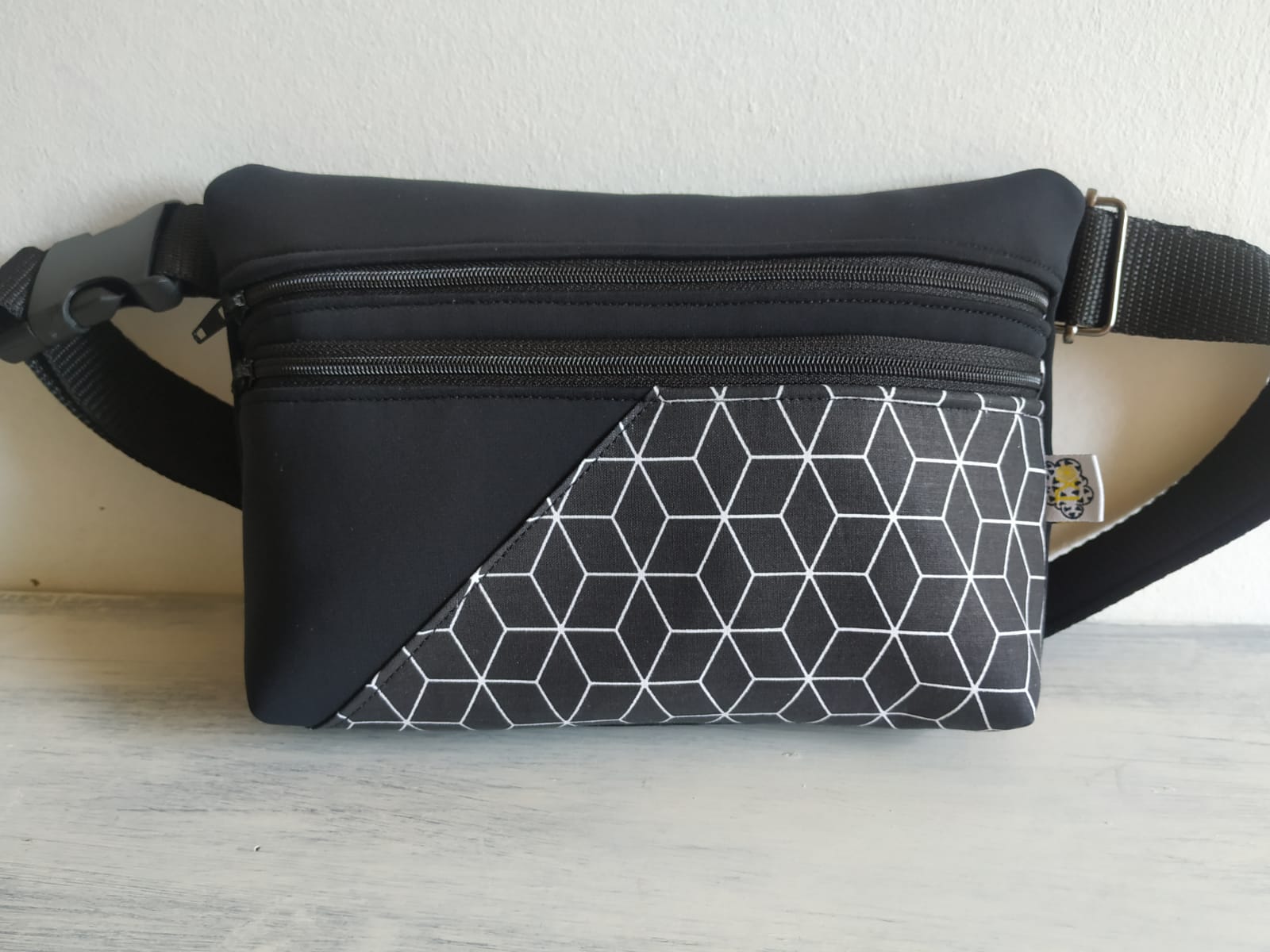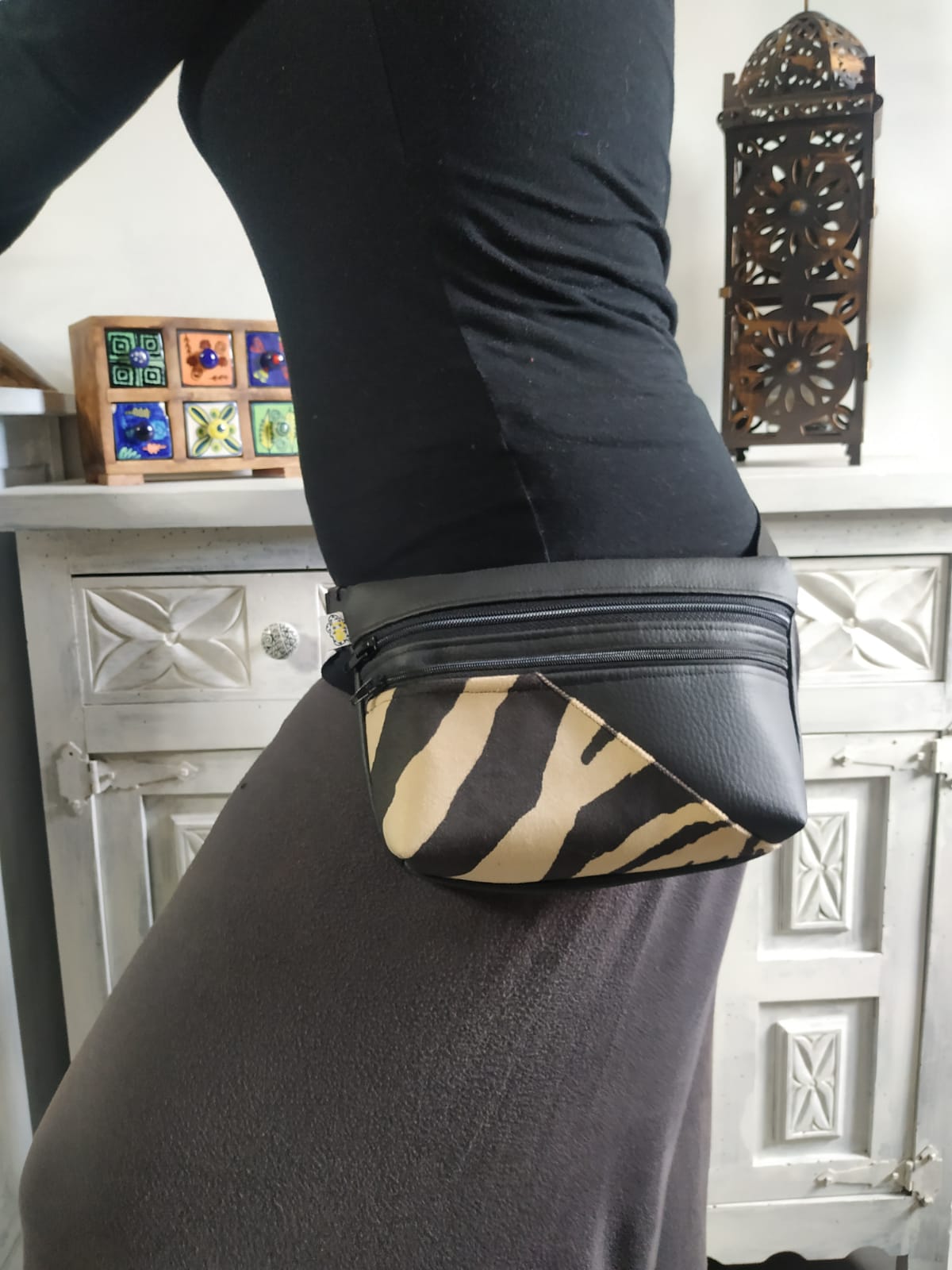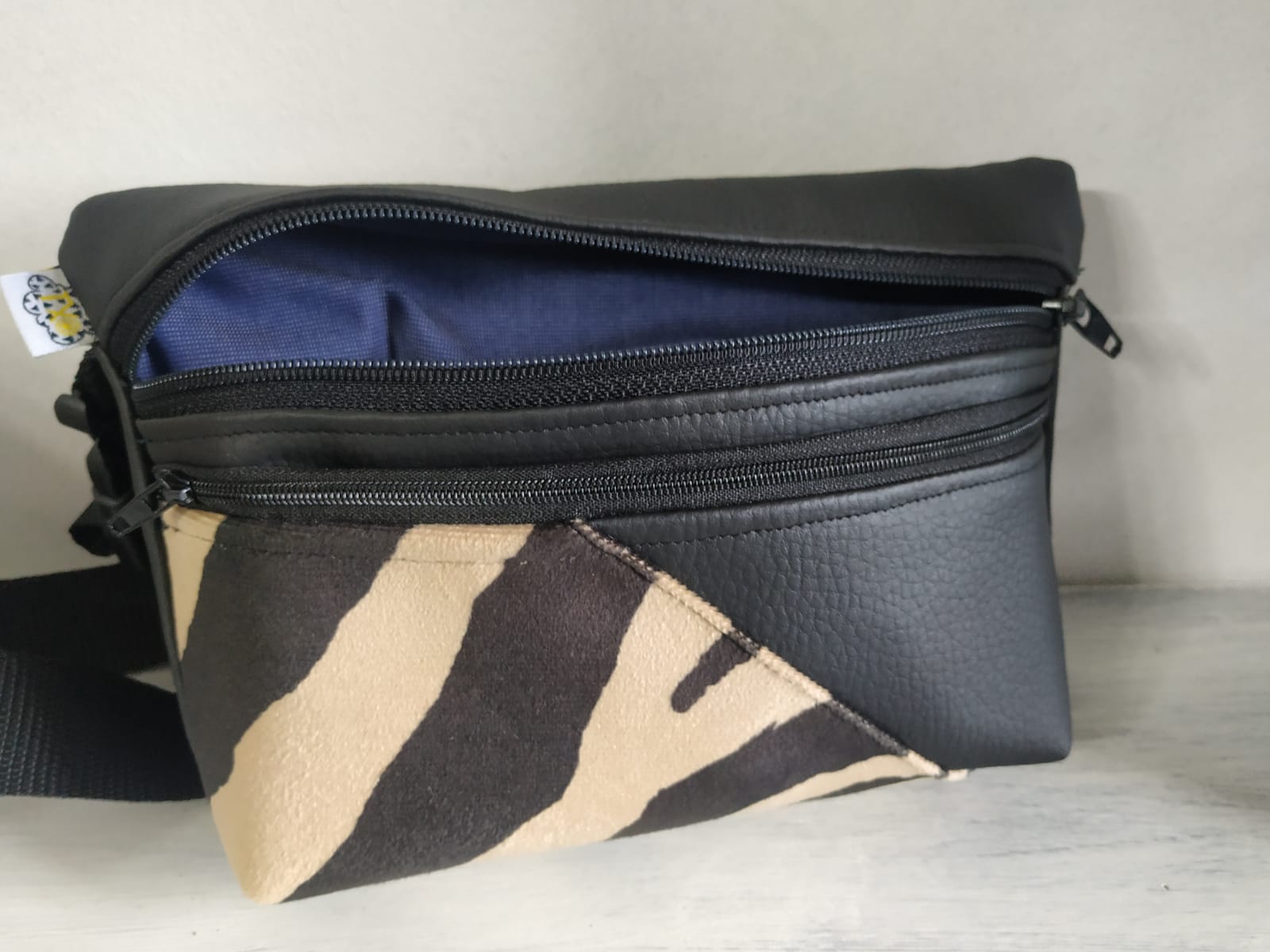 Bi kremaileradun Riñonera. Neopreno, larruantz edo oihal bakeroz egina. / Riñonera con dos cremalleras hecha de neopreno, polipiel o tela vaquera.