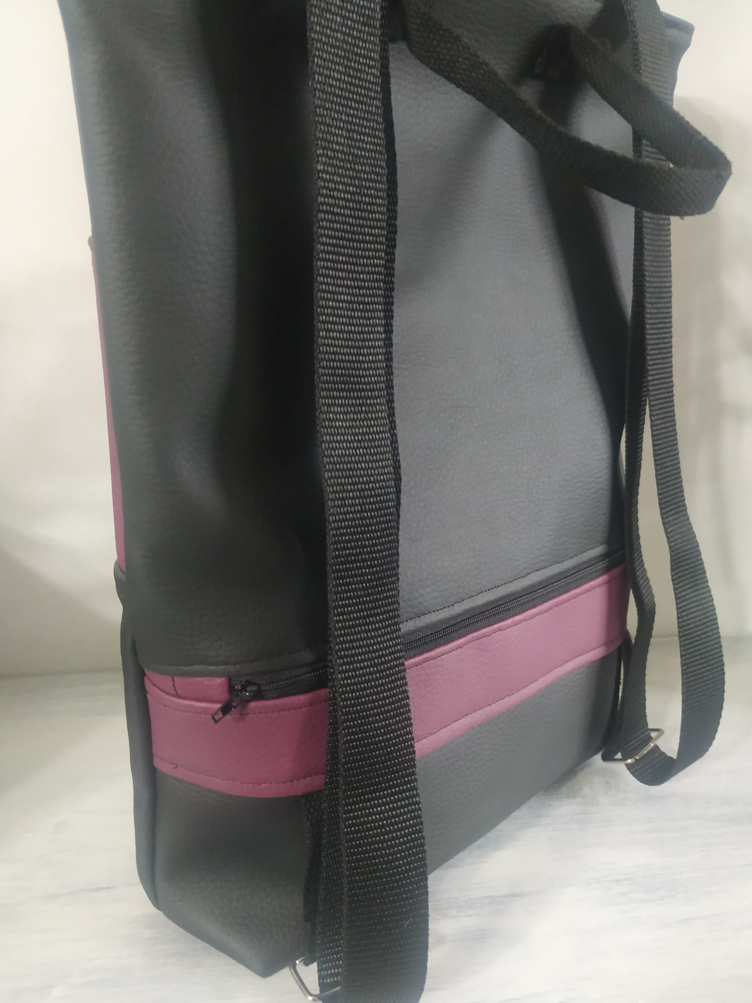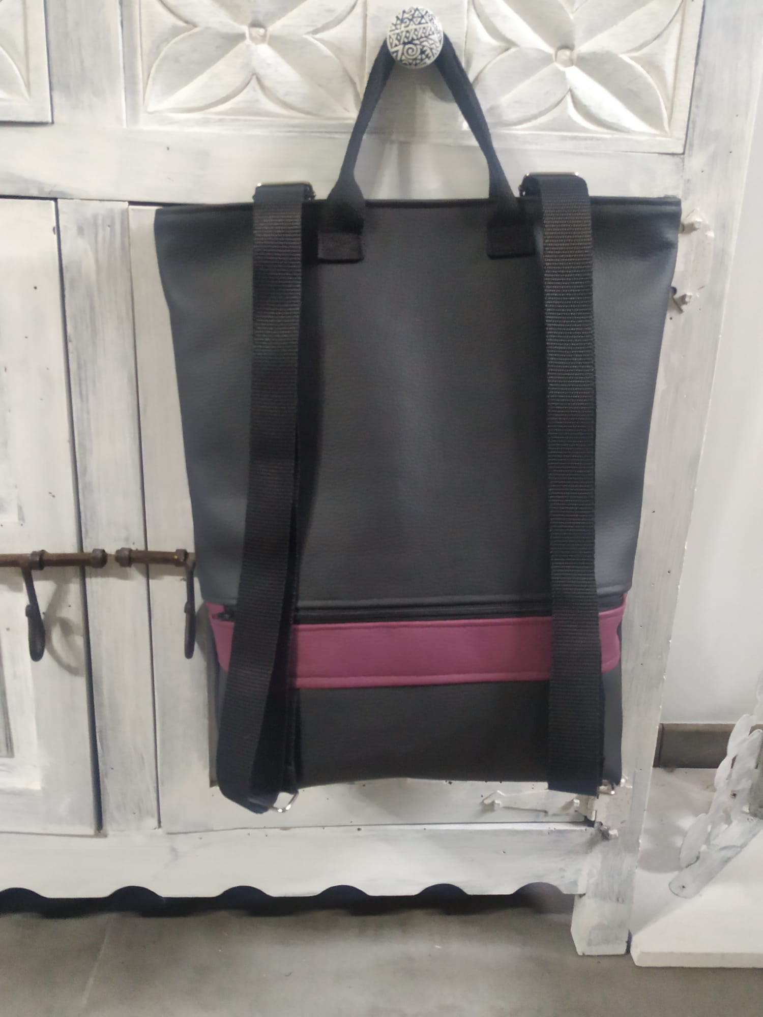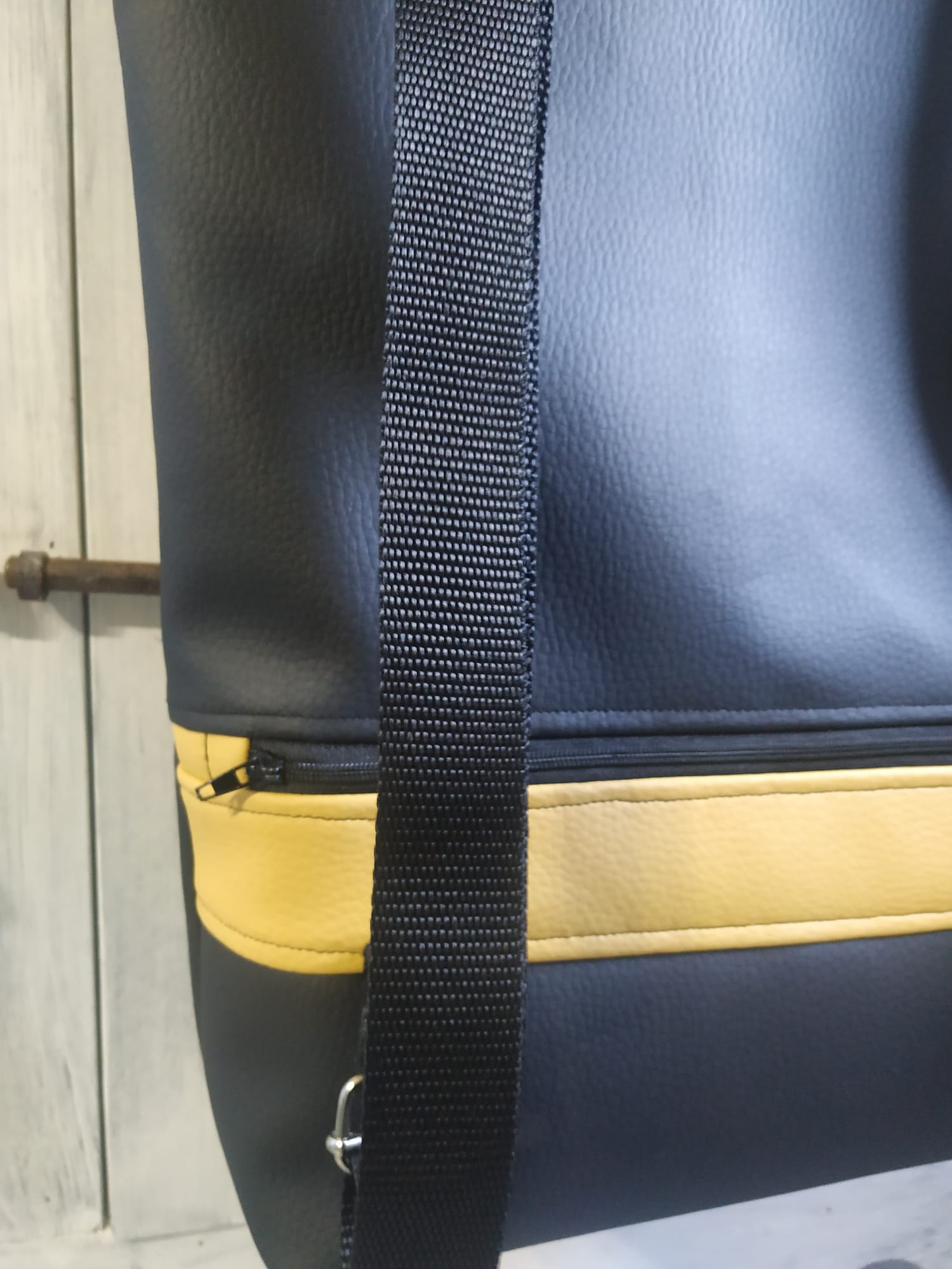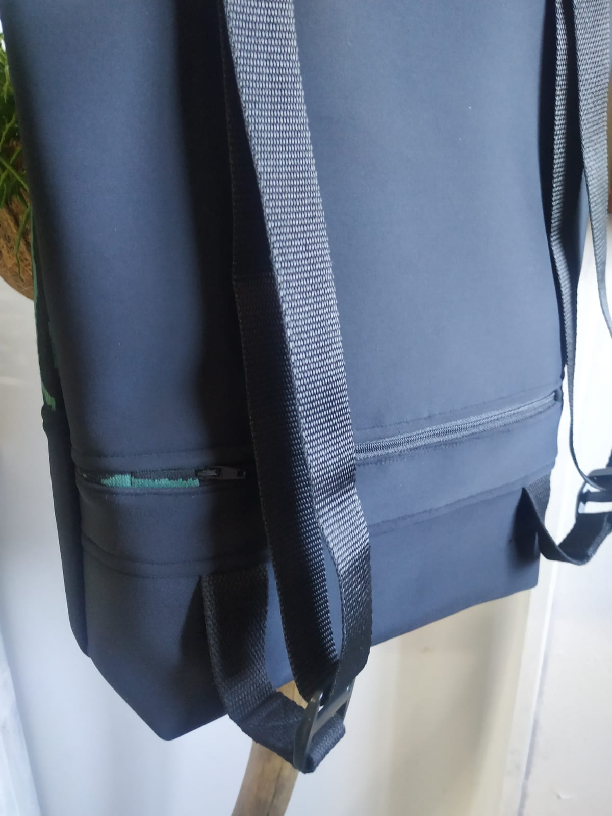 Motxila minimalista egunerokotasunerako ezin hobea, eskuz egina, neopreno edo larruantzezkoa, kotoizko barne forroarekin. / Mochila minimalista perfecta para el uso diario, hecha a mano, de neopreno o polipiel, con forro interior de algodón.