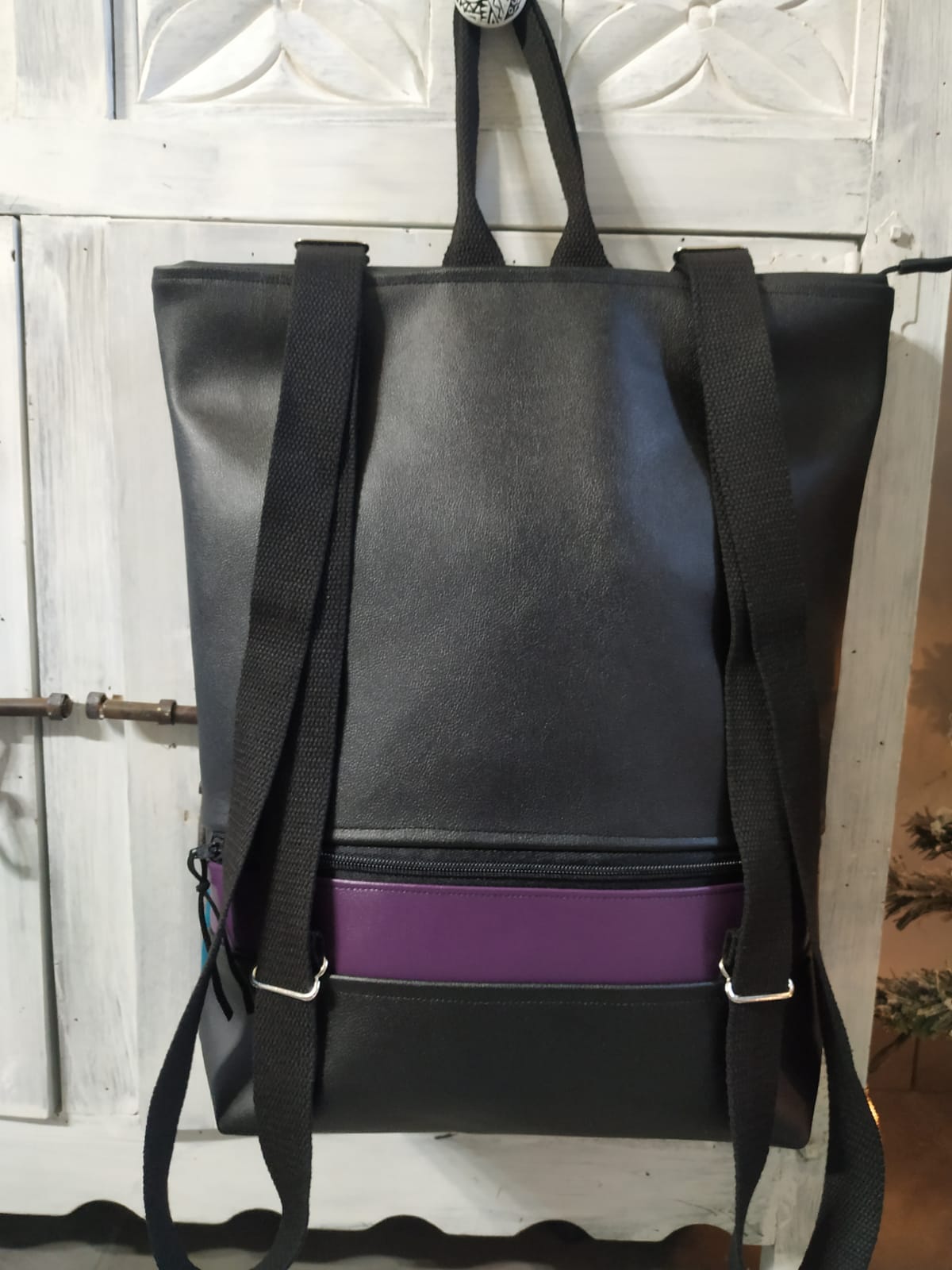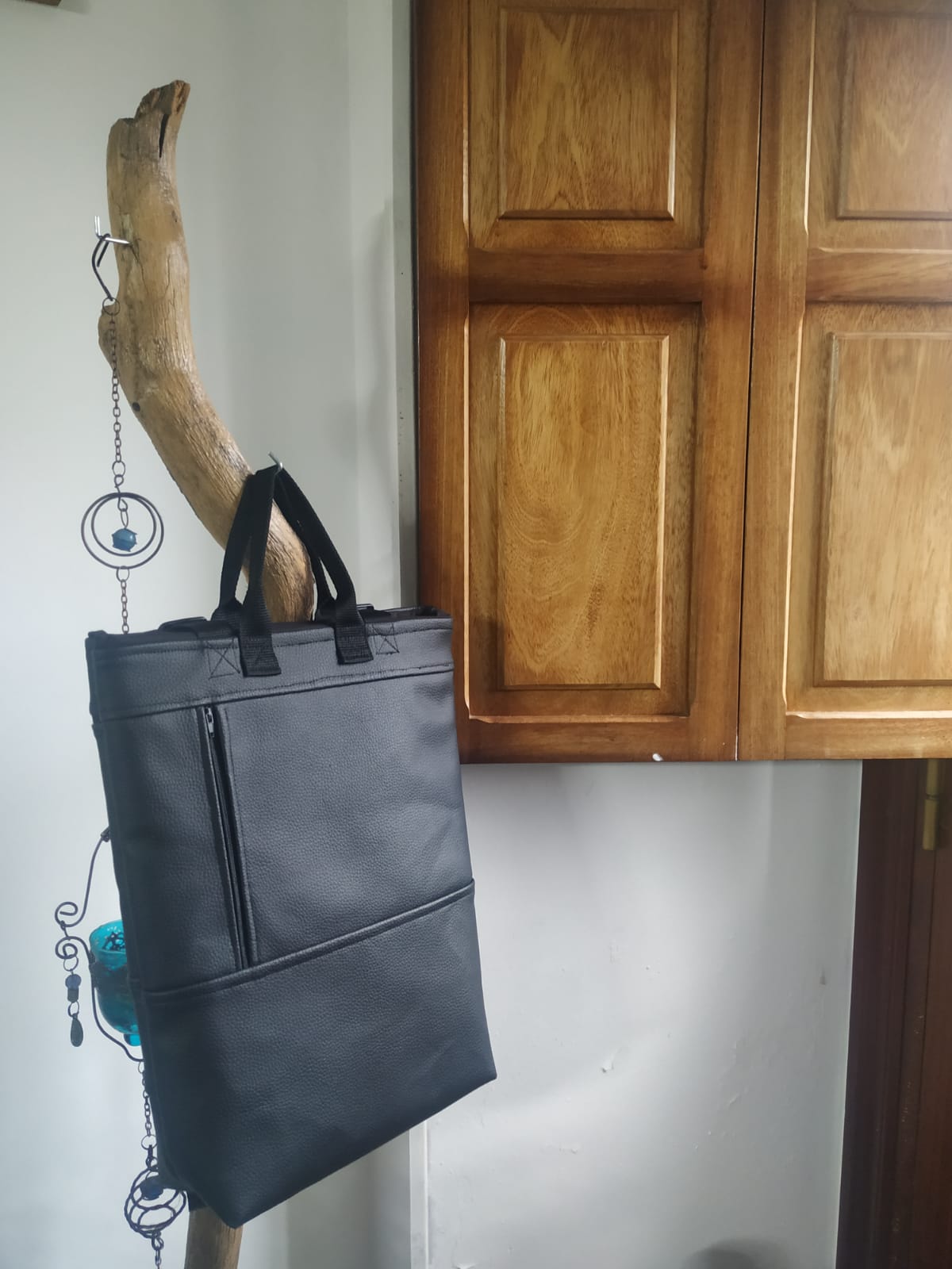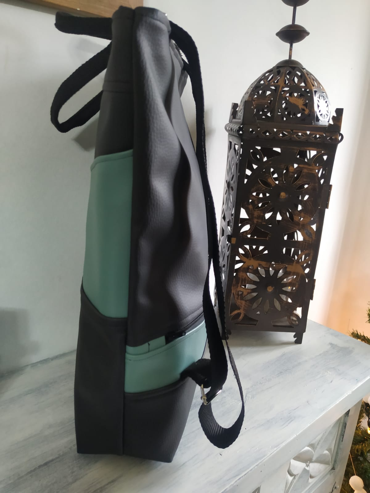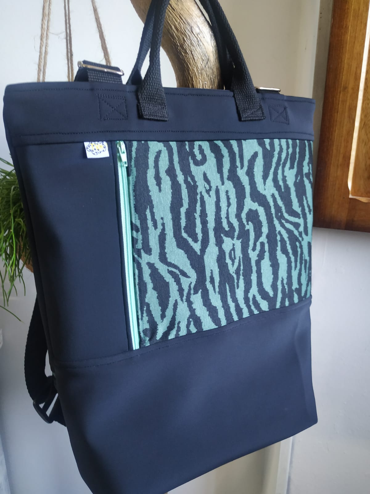 Motxila minimalista egunerokotasunerako ezin hobea, eskuz egina, neopreno edo larruantzezkoa, kotoizko barne forroarekin. / Mochila minimalista perfecta para el uso diario, hecha a mano, de neopreno o polipiel, con forro interior de algodón.