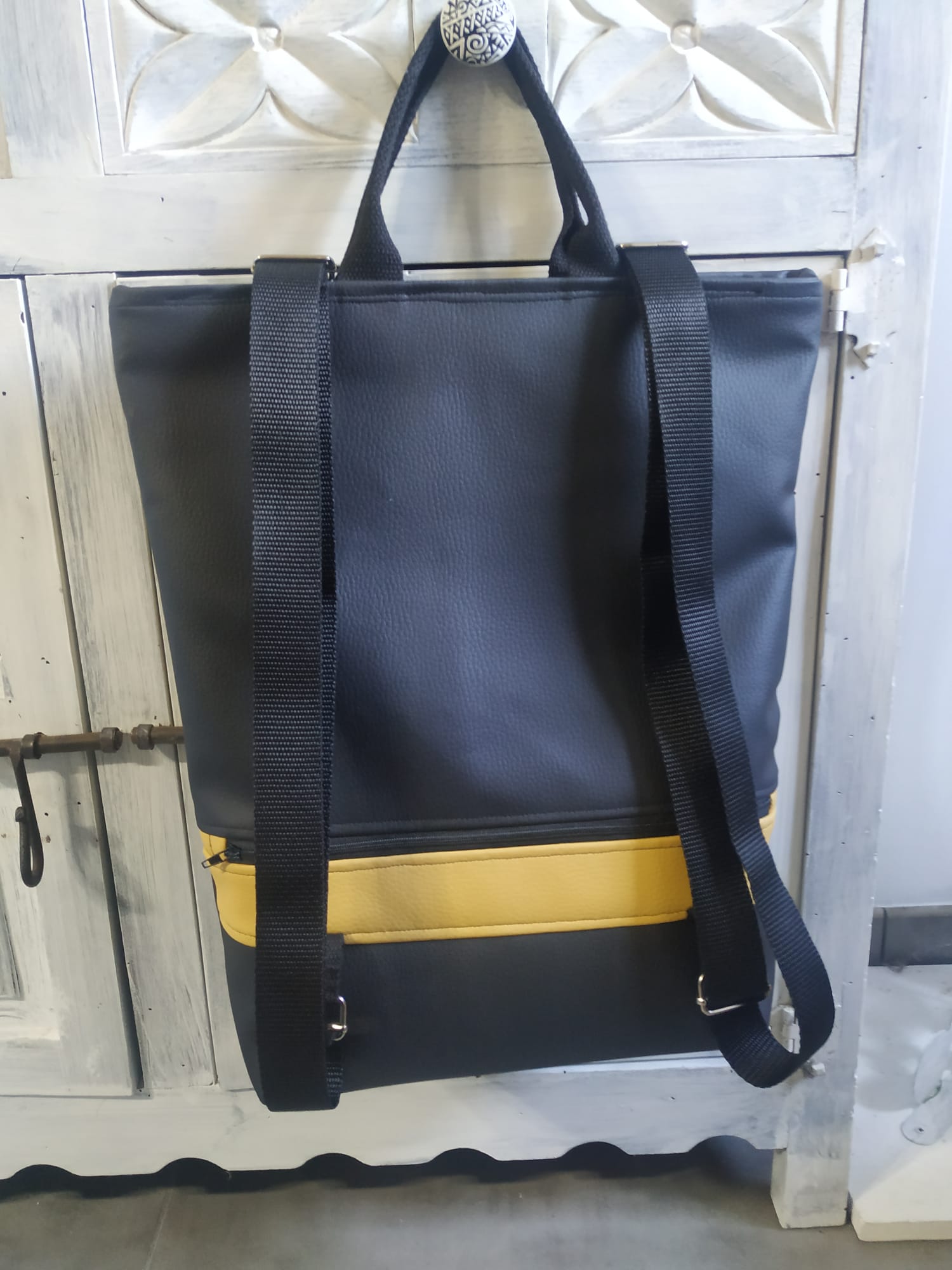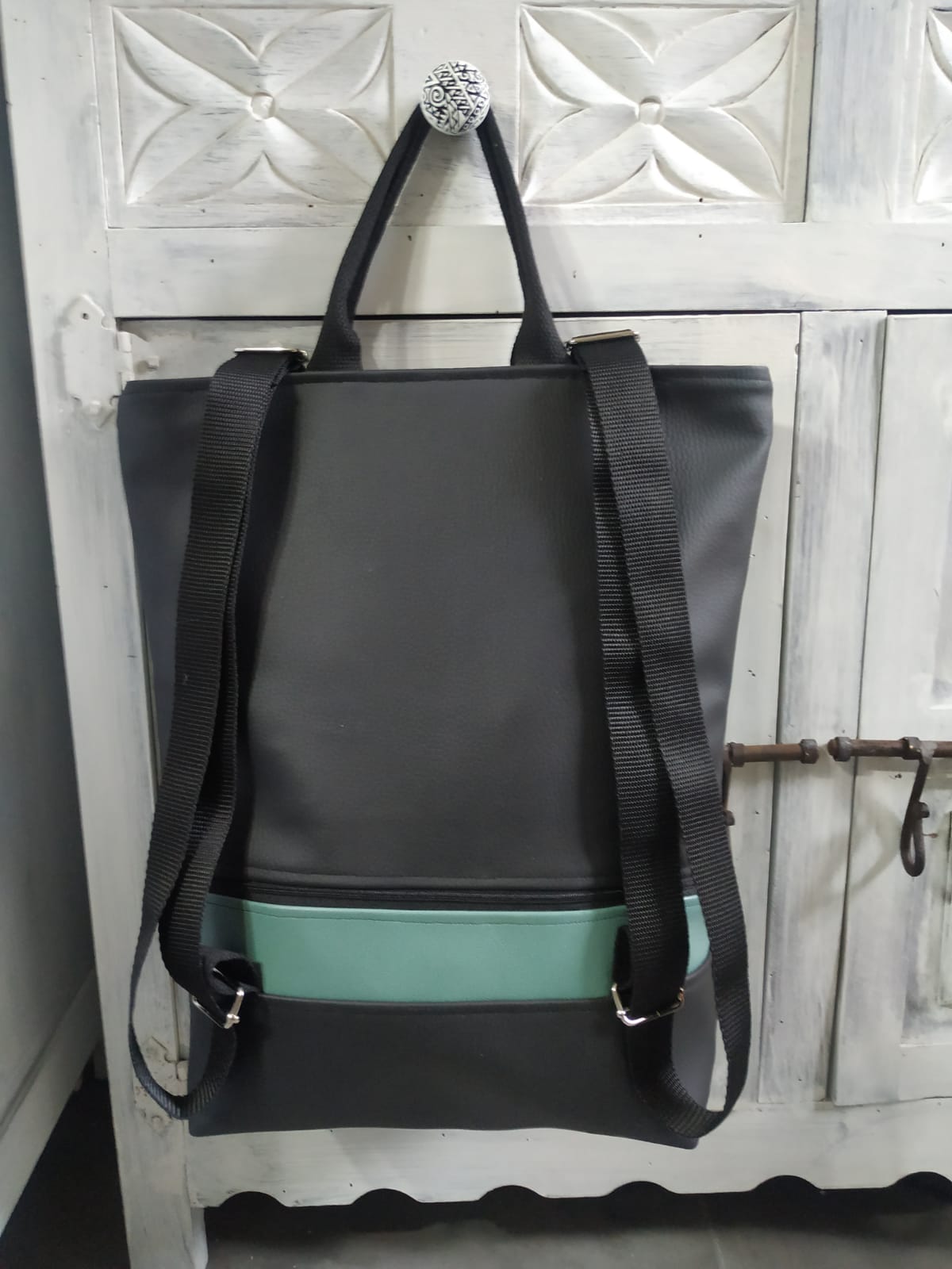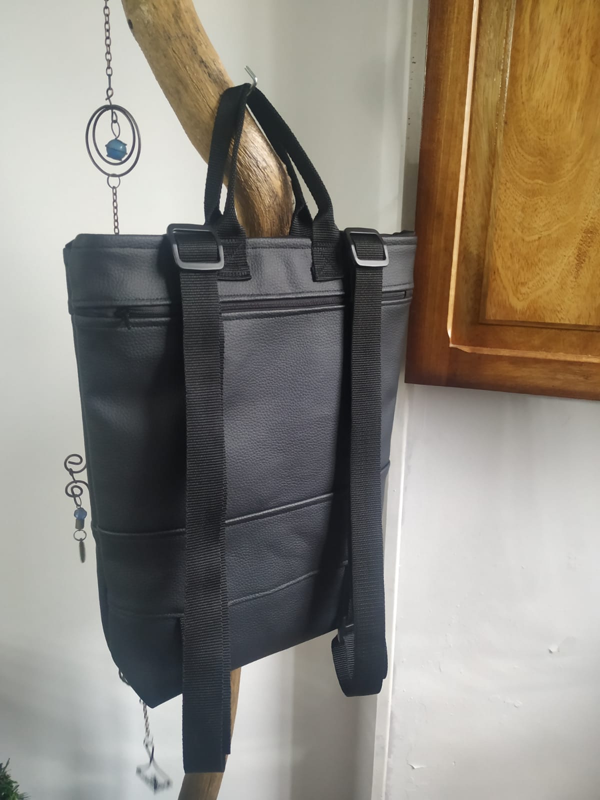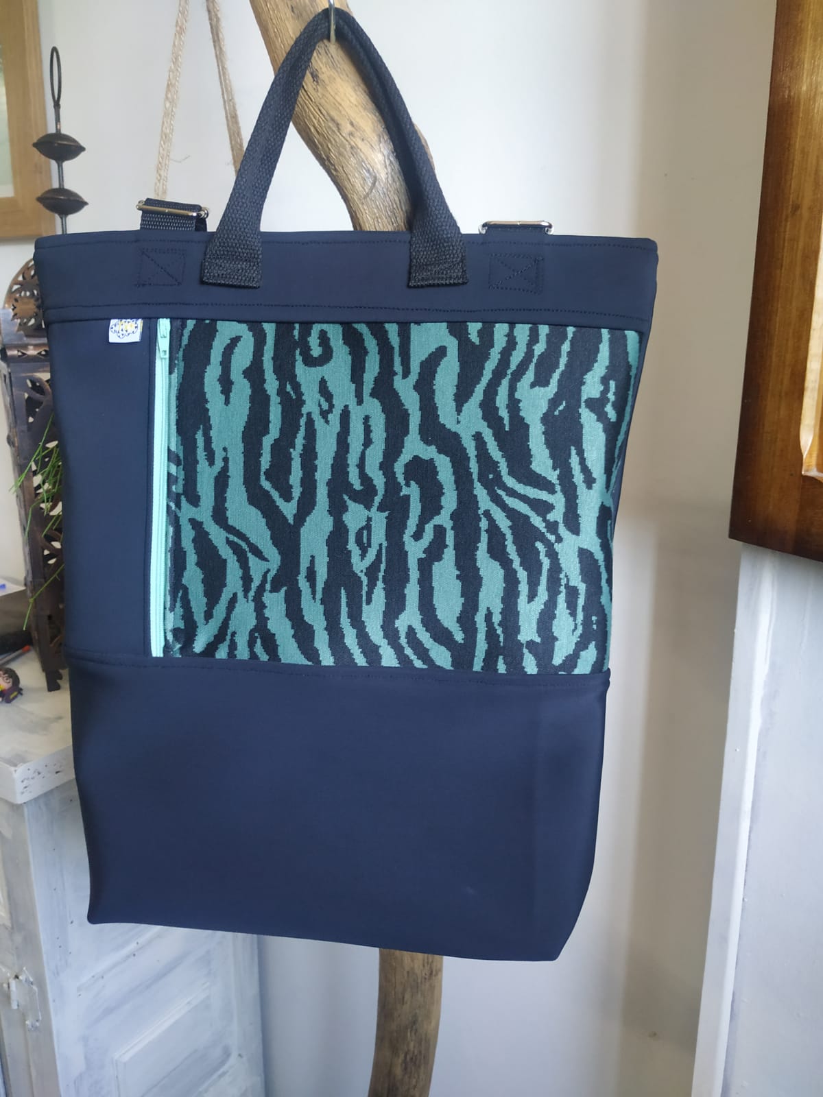 Motxila minimalista egunerokotasunerako ezin hobea, eskuz egina, neopreno edo larruantzezkoa, kotoizko barne forroarekin. / Mochila minimalista perfecta para el uso diario, hecha a mano, de neopreno o polipiel, con forro interior de algodón.
