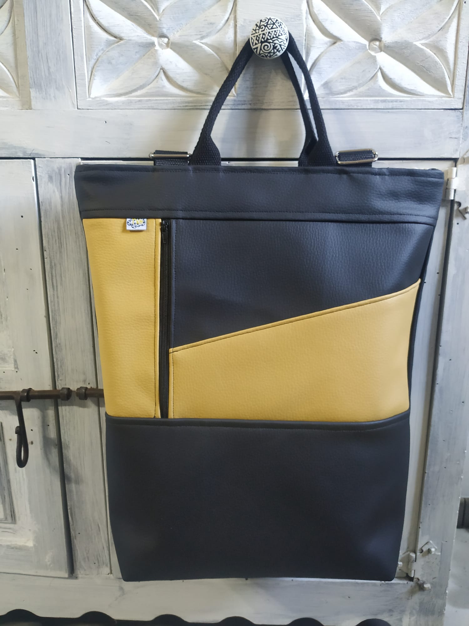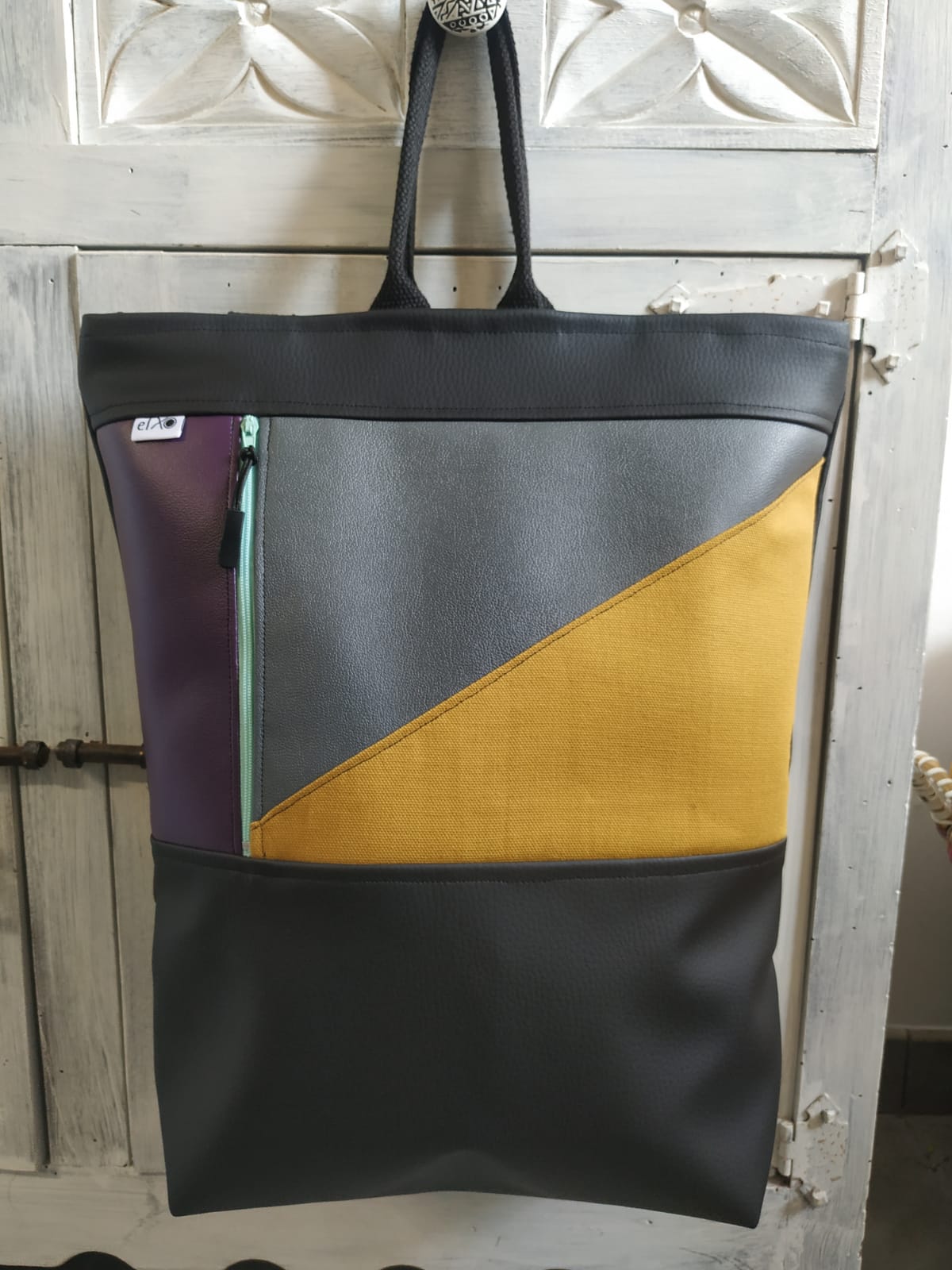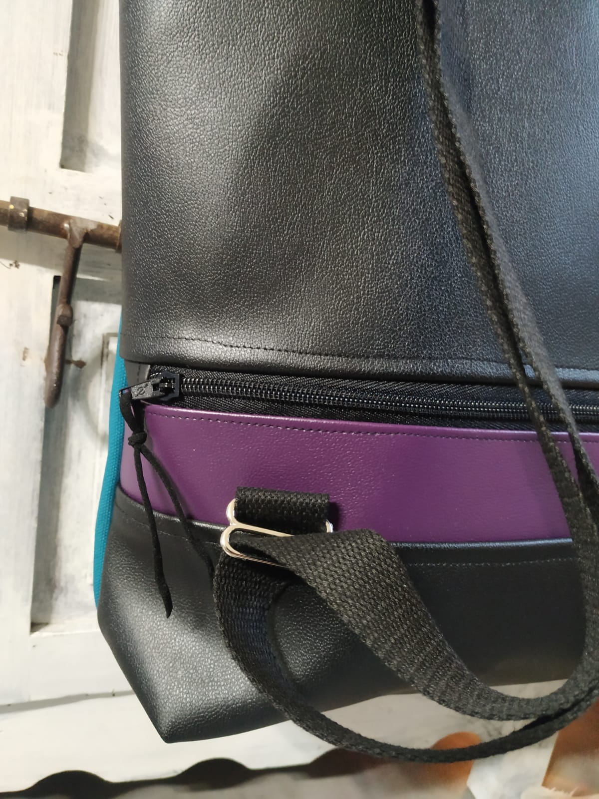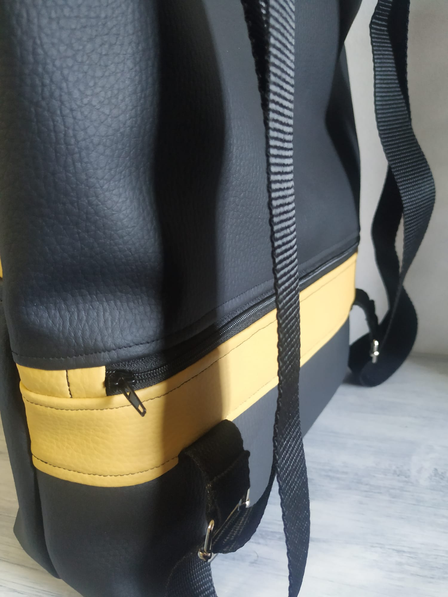 Motxila minimalista egunerokotasunerako ezin hobea, eskuz egina, neopreno edo larruantzezkoa, kotoizko barne forroarekin. / Mochila minimalista perfecta para el uso diario, hecha a mano, de neopreno o polipiel, con forro interior de algodón.