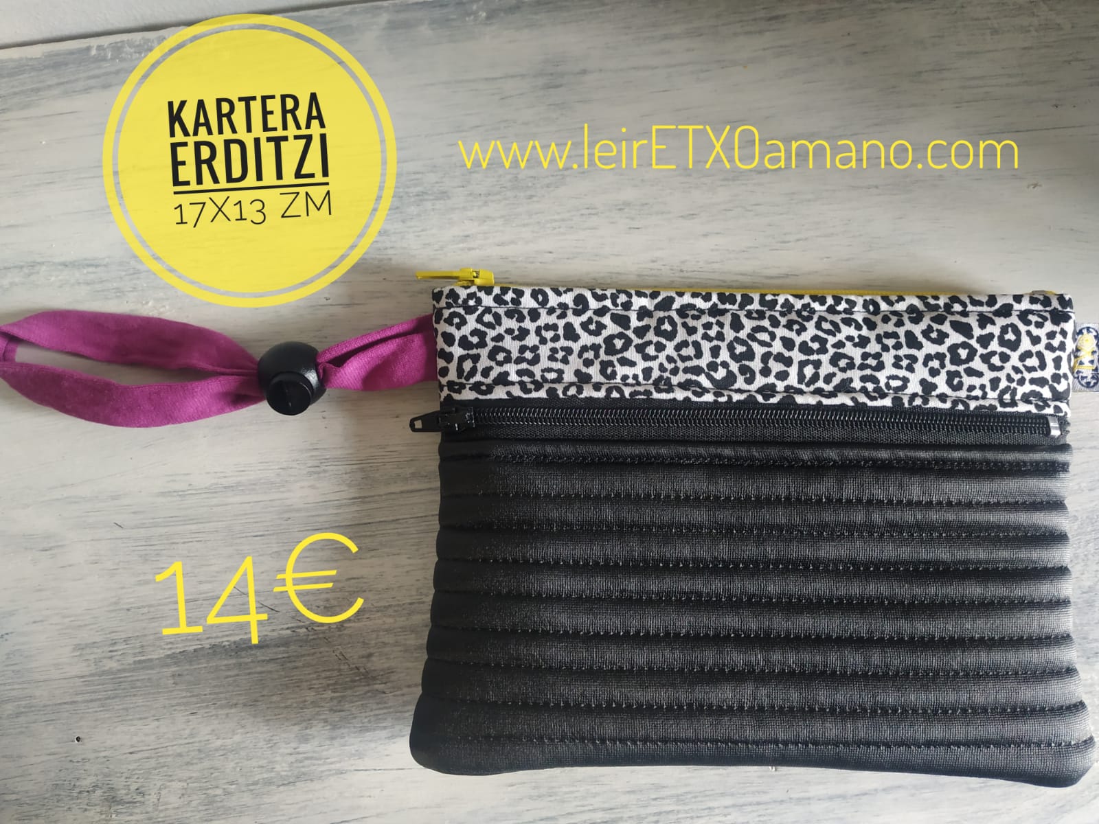 KarTeRa KaRTeRa ‘eRDiTZi’ (14,00 €) Publicado por leiretxoamano el 2 junio, 202125 mayo, 2022 Tamaina ertaineko diru-zorroa, giltzak, dirua eta txartelak eramateko aproposa. / Cartera tamaño medio, ideal para llevar las llaves, dinero y tarjetas. Neurriak / Medidas: 17zm x 13zm (aprox.)