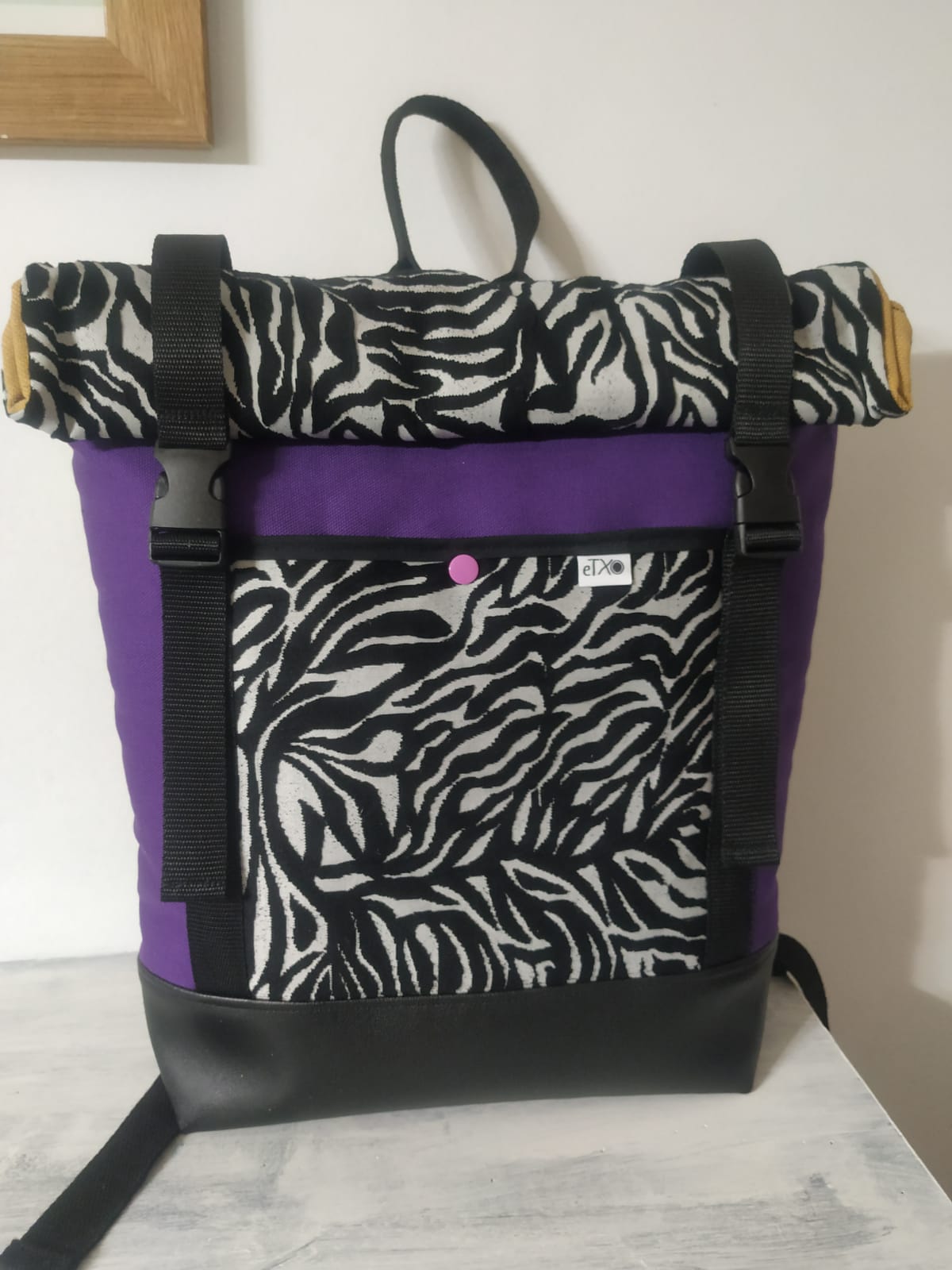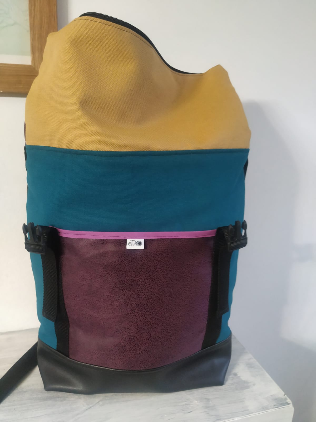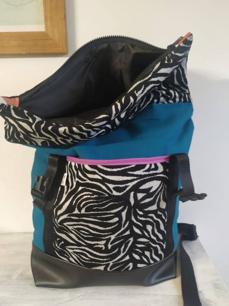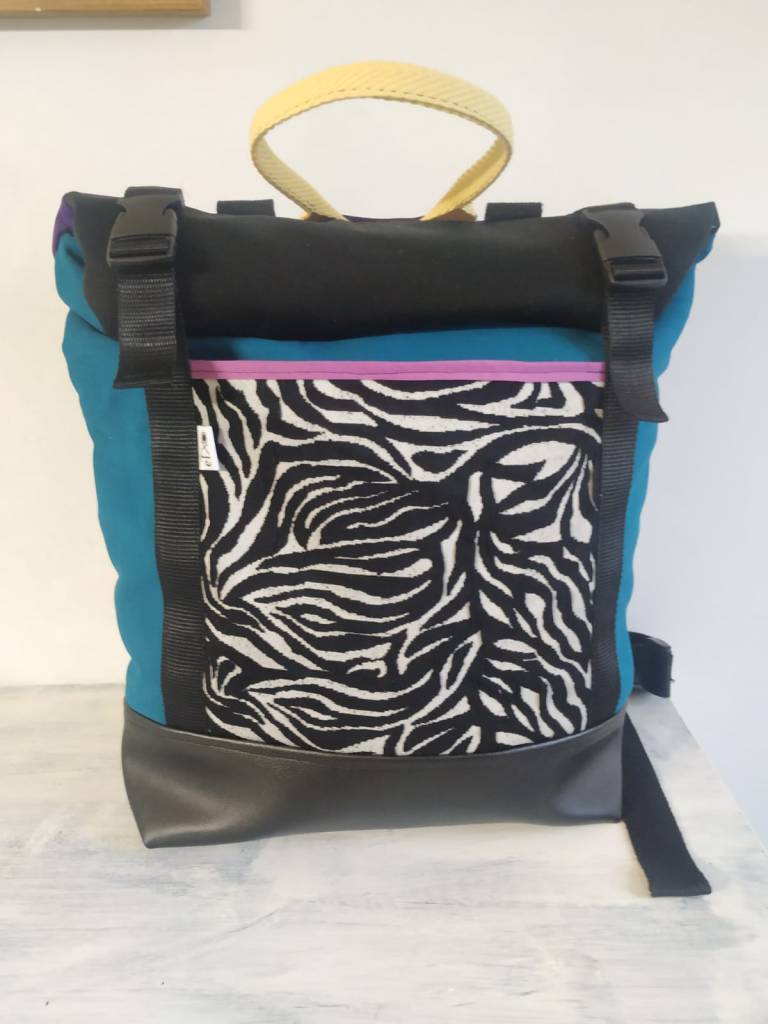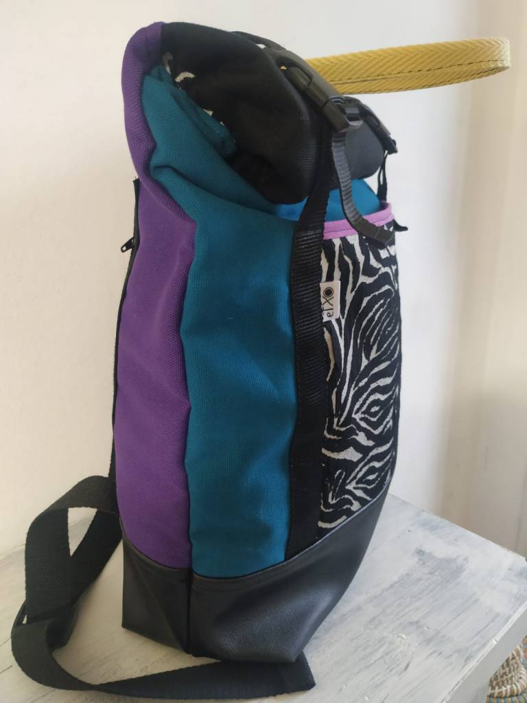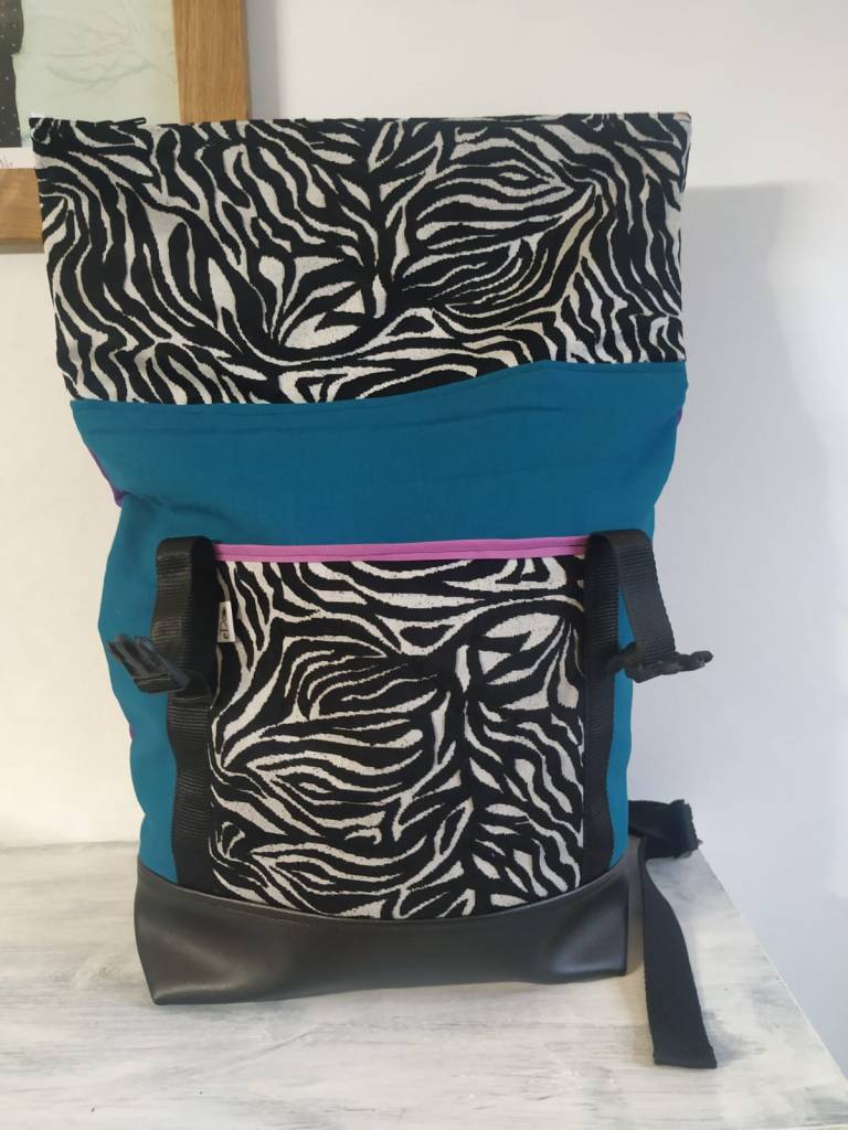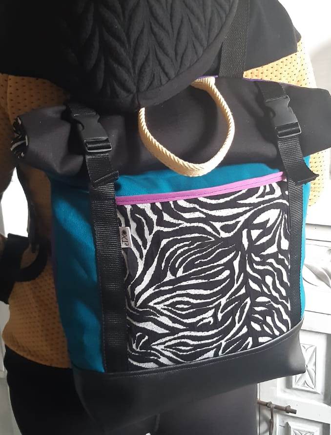 Motxila moldagarria egunerokotasunerako ezin hobea, eskuz egina, larruantzezkoa oinarria, tela-artekoa gogortzeko eta panama loneta. Poltsikoa bai aurrean zein atzean. Barne forro iragazgaitza. Kremailerazko itxitura / Mochila adaptable para uso diario, hecha a mano, base de polipiel, entretela para darle cuerpo y loneta panama. Bolsillo delantero y trasero. Forro interior impermeable. Cierre central con cremallera.