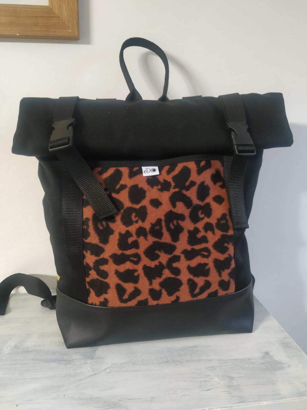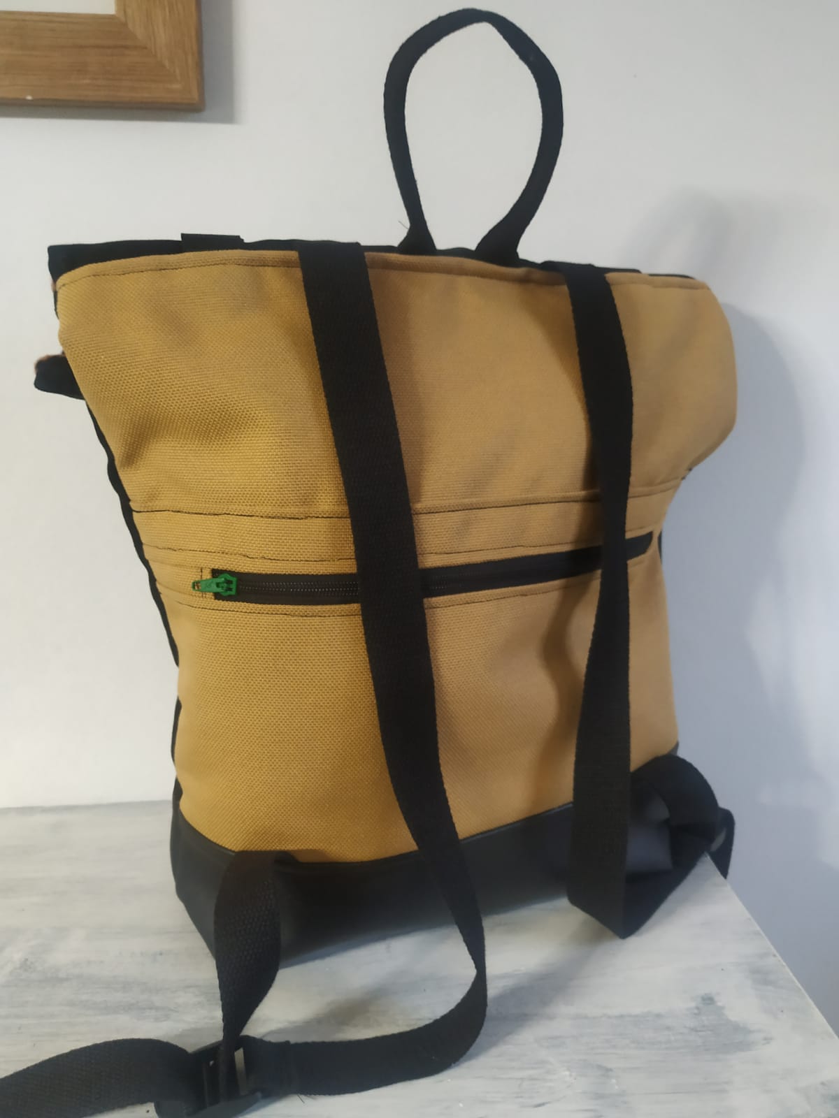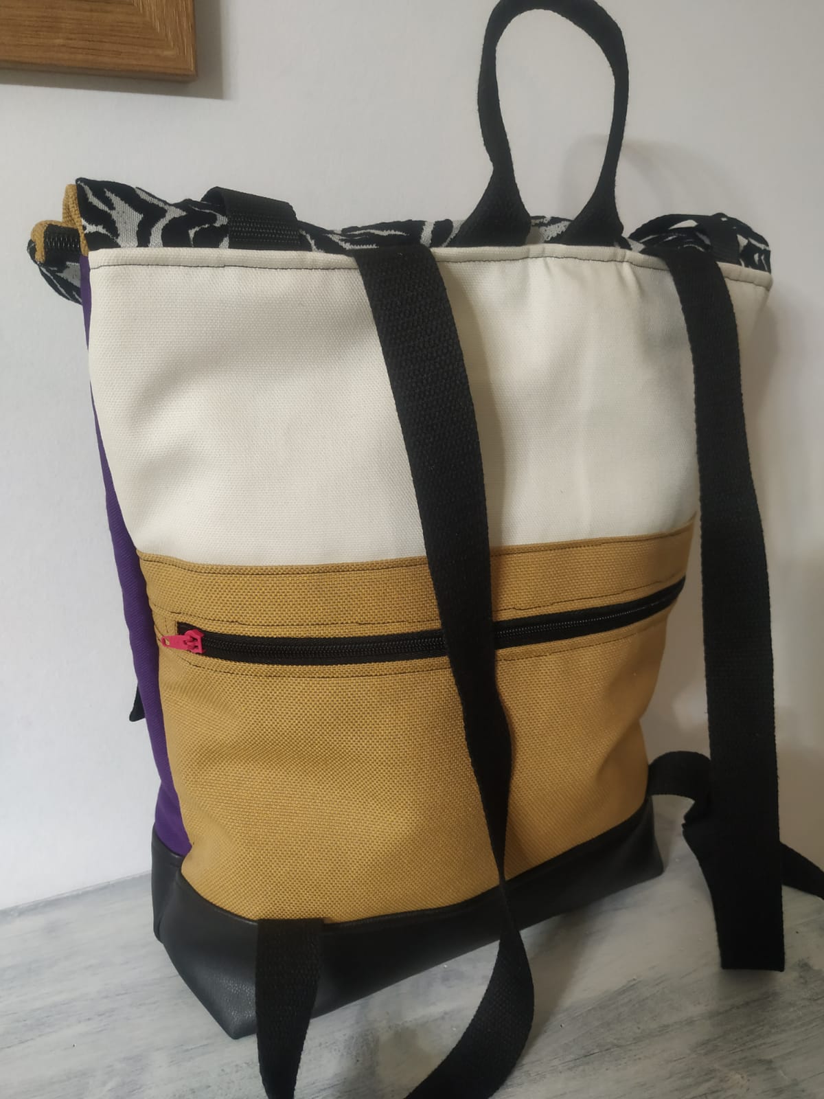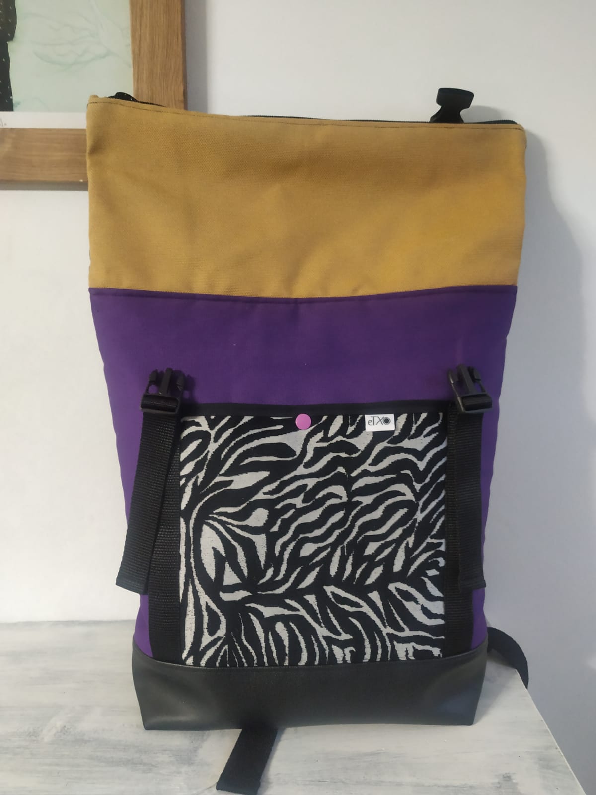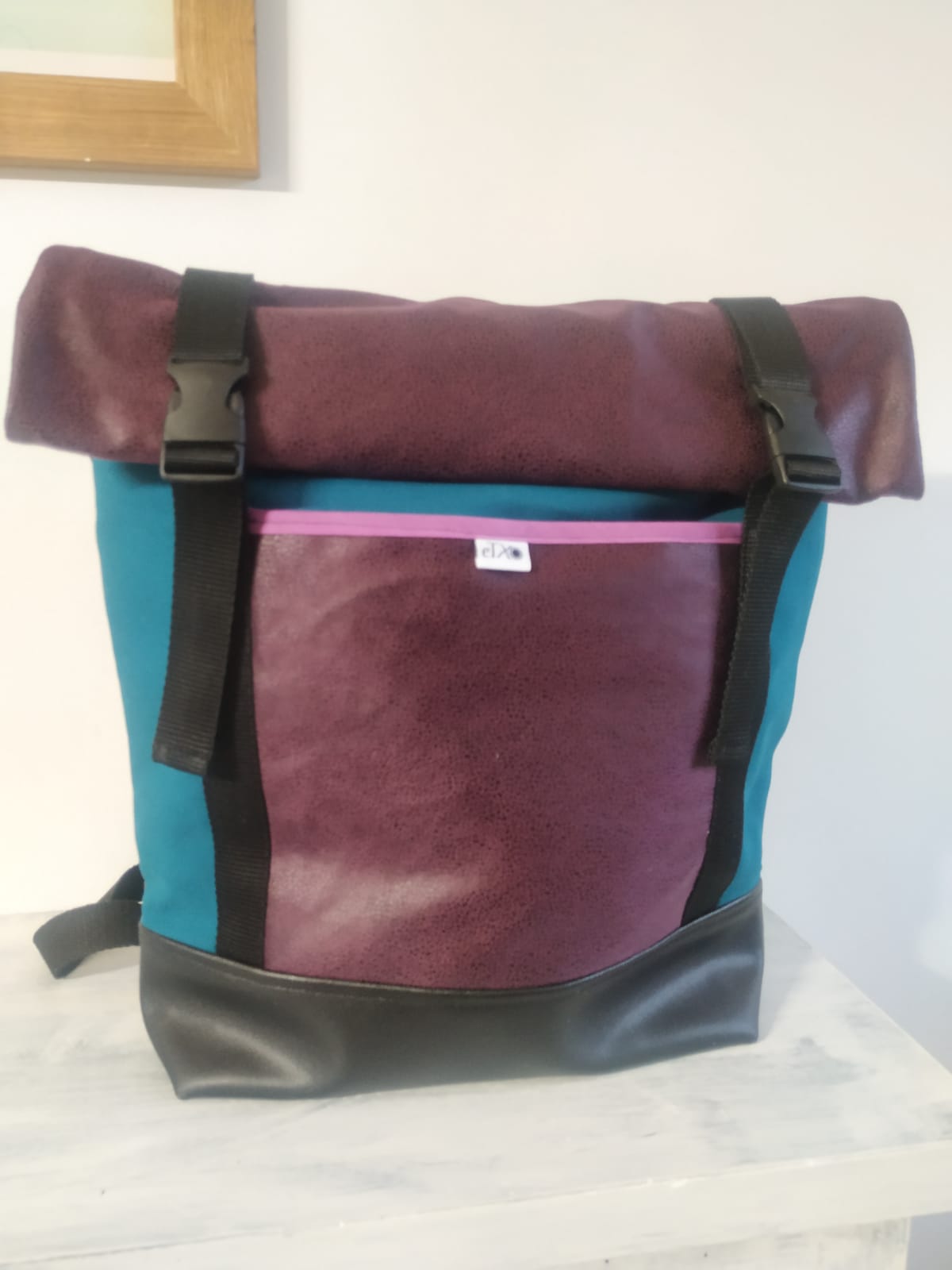 Motxila moldagarria egunerokotasunerako ezin hobea, eskuz egina, larruantzezkoa oinarria, tela-artekoa gogortzeko eta panama loneta. Poltsikoa bai aurrean zein atzean. Barne forro iragazgaitza. Kremailerazko itxitura / Mochila adaptable para uso diario, hecha a mano, base de polipiel, entretela para darle cuerpo y loneta panama. Bolsillo delantero y trasero. Forro interior impermeable. Cierre central con cremallera.