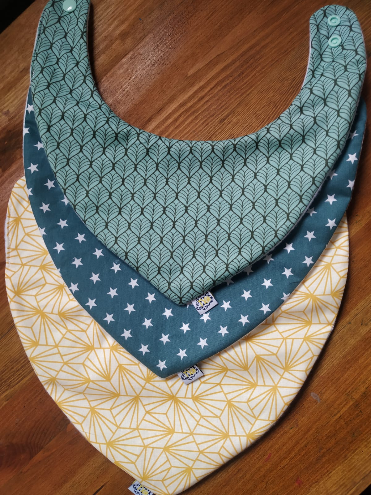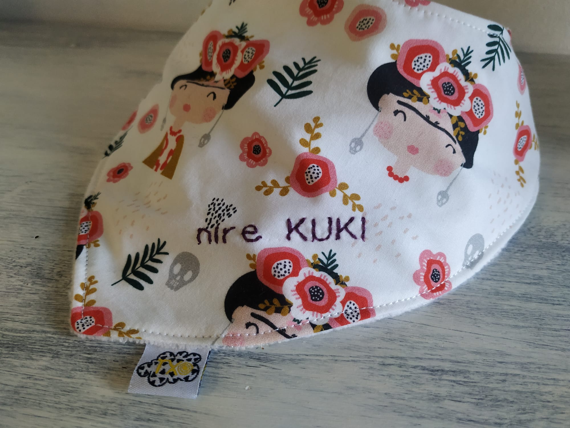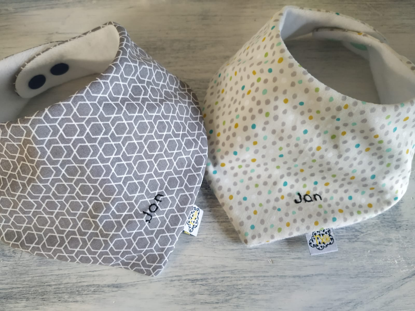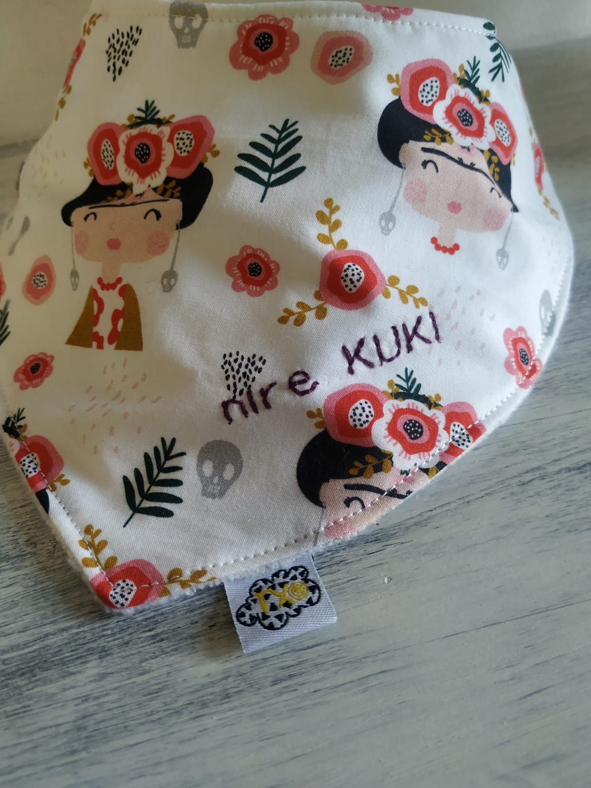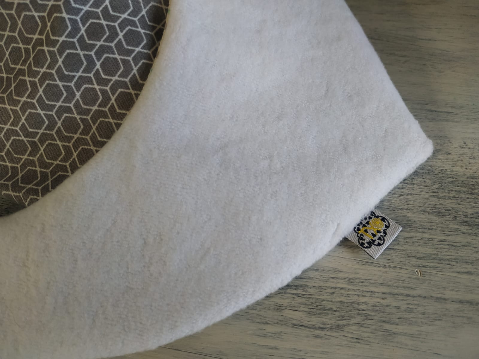 Kotoiz eta oihal iragazgaitzez egindako lepoko/zapi leuna, lotzeko presiopeko botoi erosoekin. / Suave cuello/babero de algodón y tela impermeable, con cómodos botones a presión.
