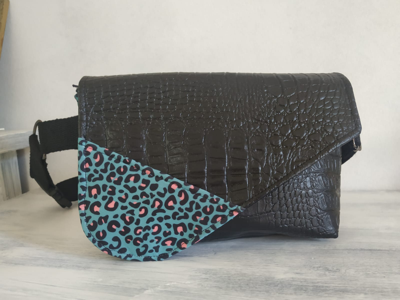 Bi kremaileradun eta solapadun Riñonera. Neopreno, larruantz edo oihal bakeroz egina. / Riñonera con dos cremalleras y solapa hecha de neopreno, polipiel o tela vaquera.