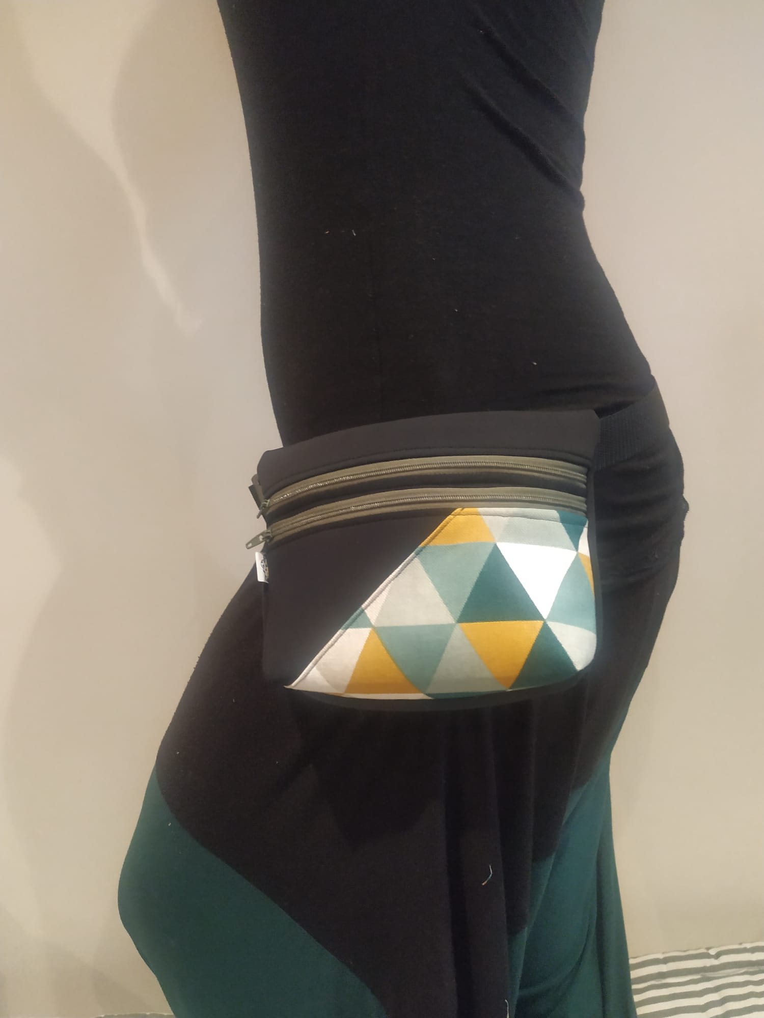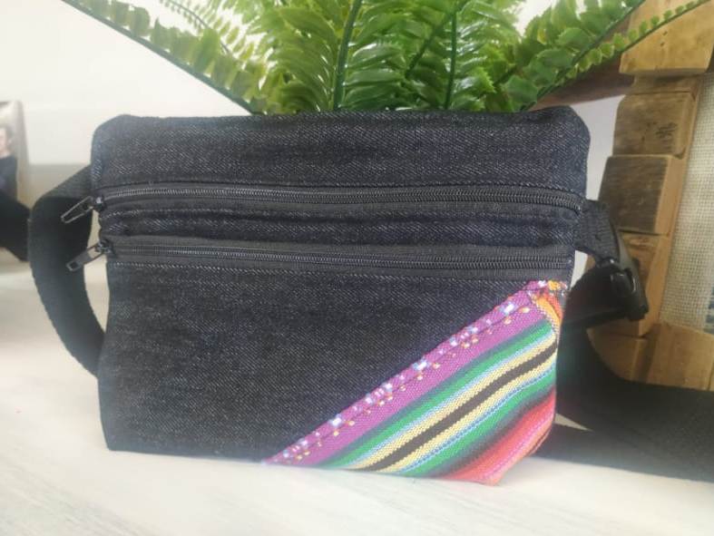 Bi kremaileradun Riñonera. Larruantz edo oihal bakeroz egina. / Riñonera con dos cremalleras hecha de polipiel o tela vaquera.